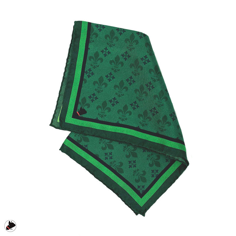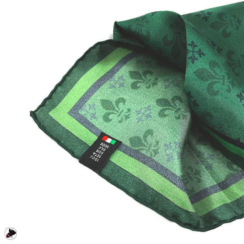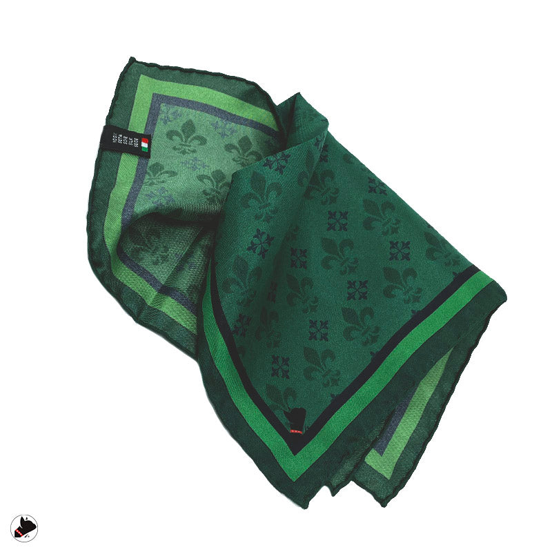 I suoi colori sono: verde, verdone e nero. Sarà semplicissimo abbinarlo ad ogni tuo outfit. Questa meravigliosa pochette da uomo è in seta, l’orlo è fatto a mano ed è totalmente Made in Italy.